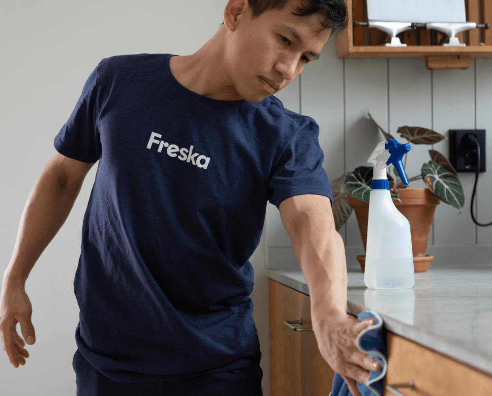 ✔️ Freska does a thorough professional cleaning of your home every month, and all you have to do is a little maintenance cleaning and organization.